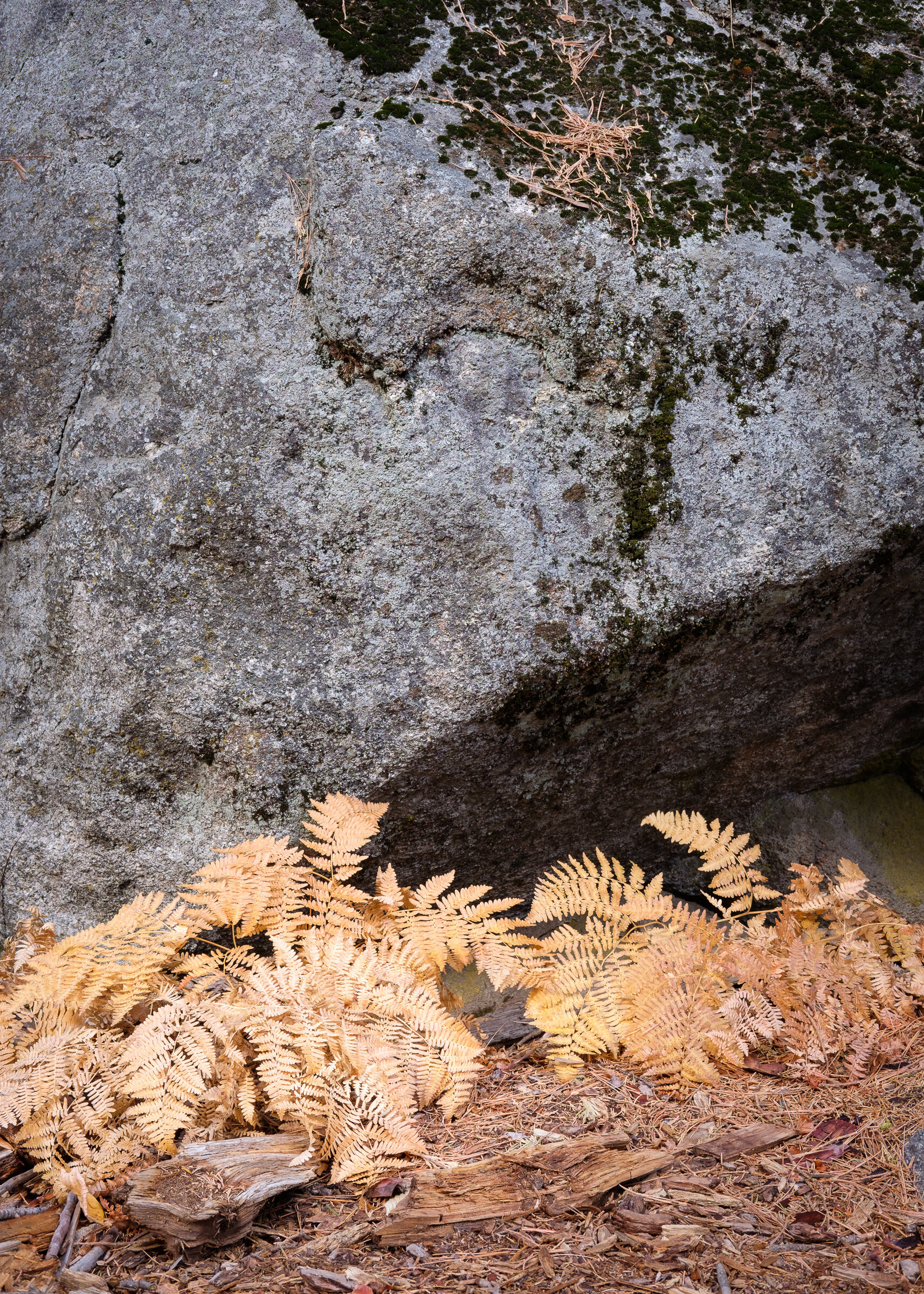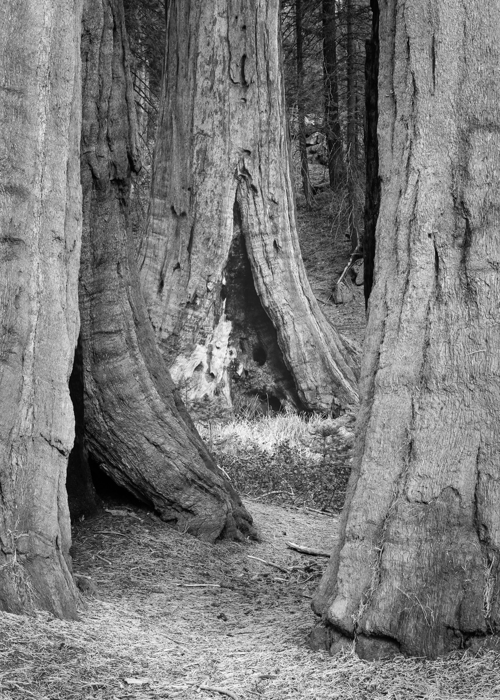 We finally made our way around to the General Grant Tree. It didn’t seem much to me, so while Ann started photographing it, I looked uphill towards this draw and found several photographs. It started with a group of rocks and ferns at the bottom of the draw.
