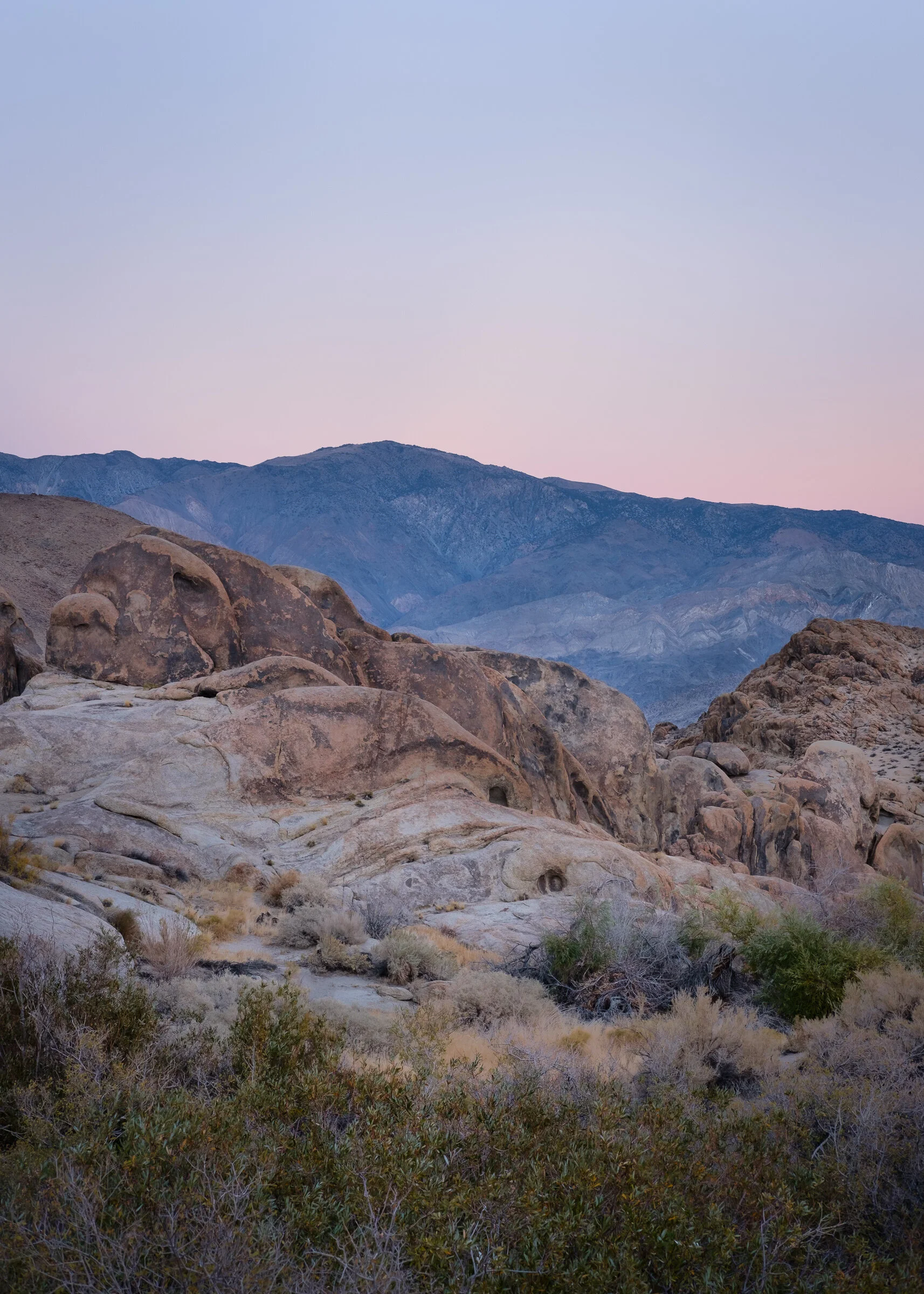 As the sun was starting to set, I finally made it to a landscape. I’d seen a cluster of rocks to the east with the Inyo Mountains as a backdrop. I set up my camera and noticed that the sun was about half way down the mountains and thought to myself, “Dan, wait a while and the whole mountains will be lit.” So I started wandering around, looking for other images to quickly move my camera to when the shot was ready.