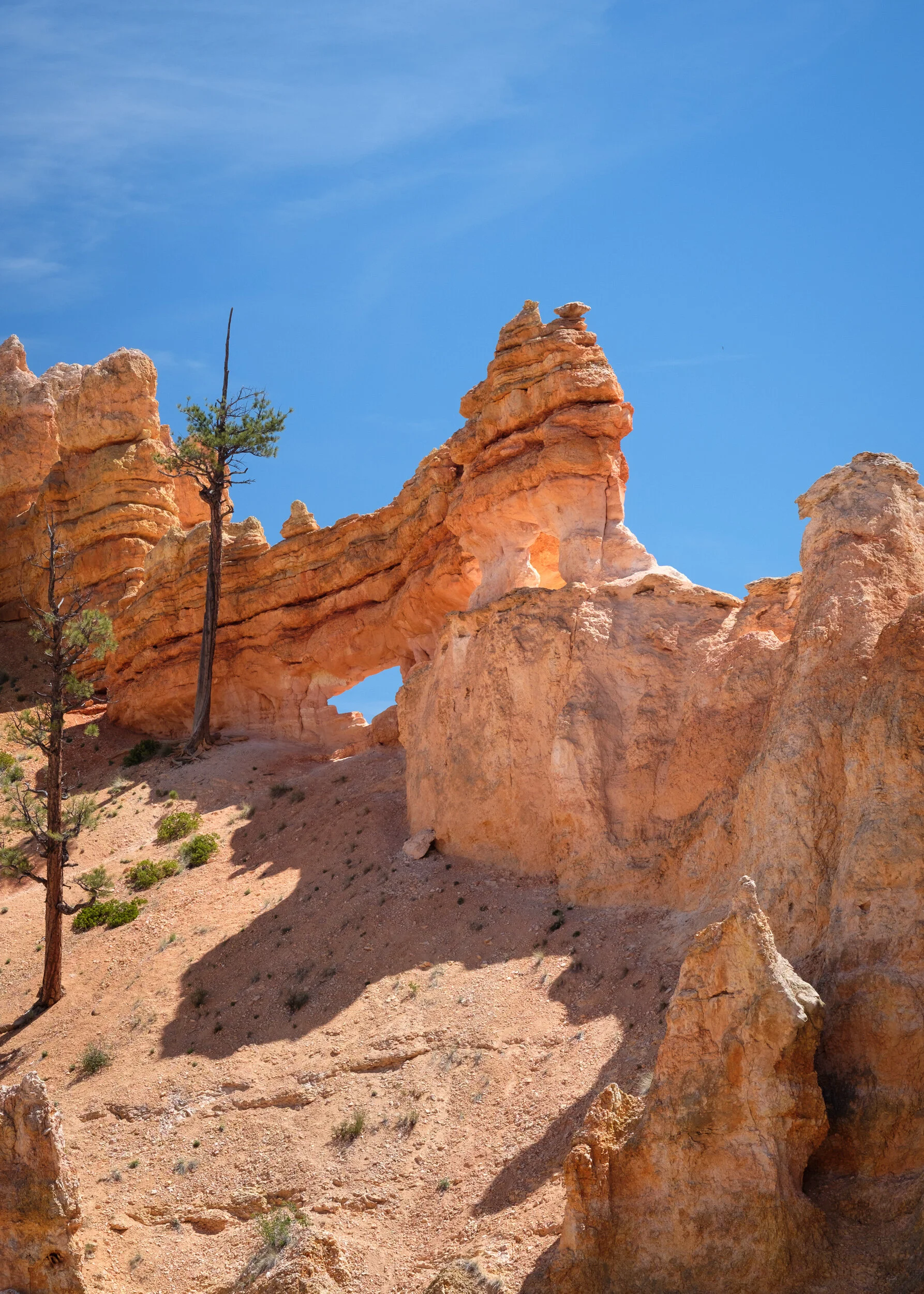 We wound up going to the Shakespeare Arch/Sentinel Trail, which affords distant views of the main basin area, surrounding hillsides and Bryce Canyon way off in the western horizon. We weren’t really expecting much so we left the main gear in Beast and I grabbed my Fujifilm point-and-shoot. On the one hand I’m glad I didn’t just assume my iPhone would do, on the other hand, I could kick myself for not brining a better camera, even though it was only supposed to be a scouting expedition.