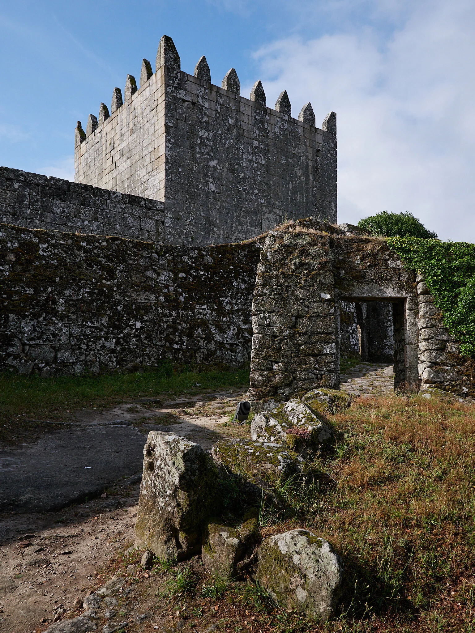By castle standards it was small, really more of a small fortification. Certainly no where near the size of the castle in Guimarães. Walking around the place, though, one could easily understand how the design would funnel people into kill zones and would allow defenders protection, but if some of the forward positions fell, would not offer any real protection to those on offense. The gate was just one of those features. Slots in the rampart to shoot through (or pour down boiling oil), and once you got through, there was a giant boulder about 2 steps in that would force you left or right.
