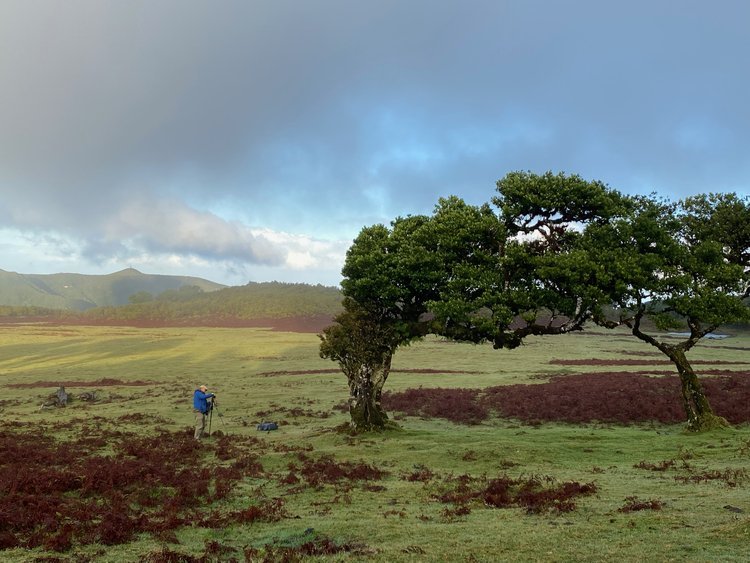 In any event, here’s the first post from our trip, and oddly enough, it’s of me, not Ann. I use the word “oddly” because today (Saturday) is Ann’s birthday and for her birthday I decided we should scout out the Fanal Forest, a Laurisilva Forest, one of the primary reasons Madeira became our photo destination. We’d driven by it on our first day here (between the airport (on the other side of the island) and checking into our first AirBNB (between the Fanal Forest and the airport) of our stay. We didn’t see much (other than a nightmare of afternoon traffic) because it was socked in with fog. We’d hoped for fog, but not on our first drive by. But we got it this morning. Back to “oddly,” because I’d once mentioned to Ann, and she decided to take me up on it, that she could ask me to work with her on her photography on any day and I’d stop doing my own. Ann being Ann felt guilty about calling in her chit (she shouldn’t have, it’s a gift and today it was a birthday gift), but she cut me some slack. So it really should be a photo of Ann, because she made the most photographs today. It was a preliminary scouting trip (we will visit there several more times this trip, I’m sure) so I didn’t lose really good photo time, plus she let me do iPhone shots (for Facebook) and point-and-shoot shots (for the blog, mainly), and she even let me make a couple of real images (this is one of them). Plus, I can feel good about it because while I was working on this image, Ann eventually set up for a very lovely image, the best of the day from either of us in my opinion.