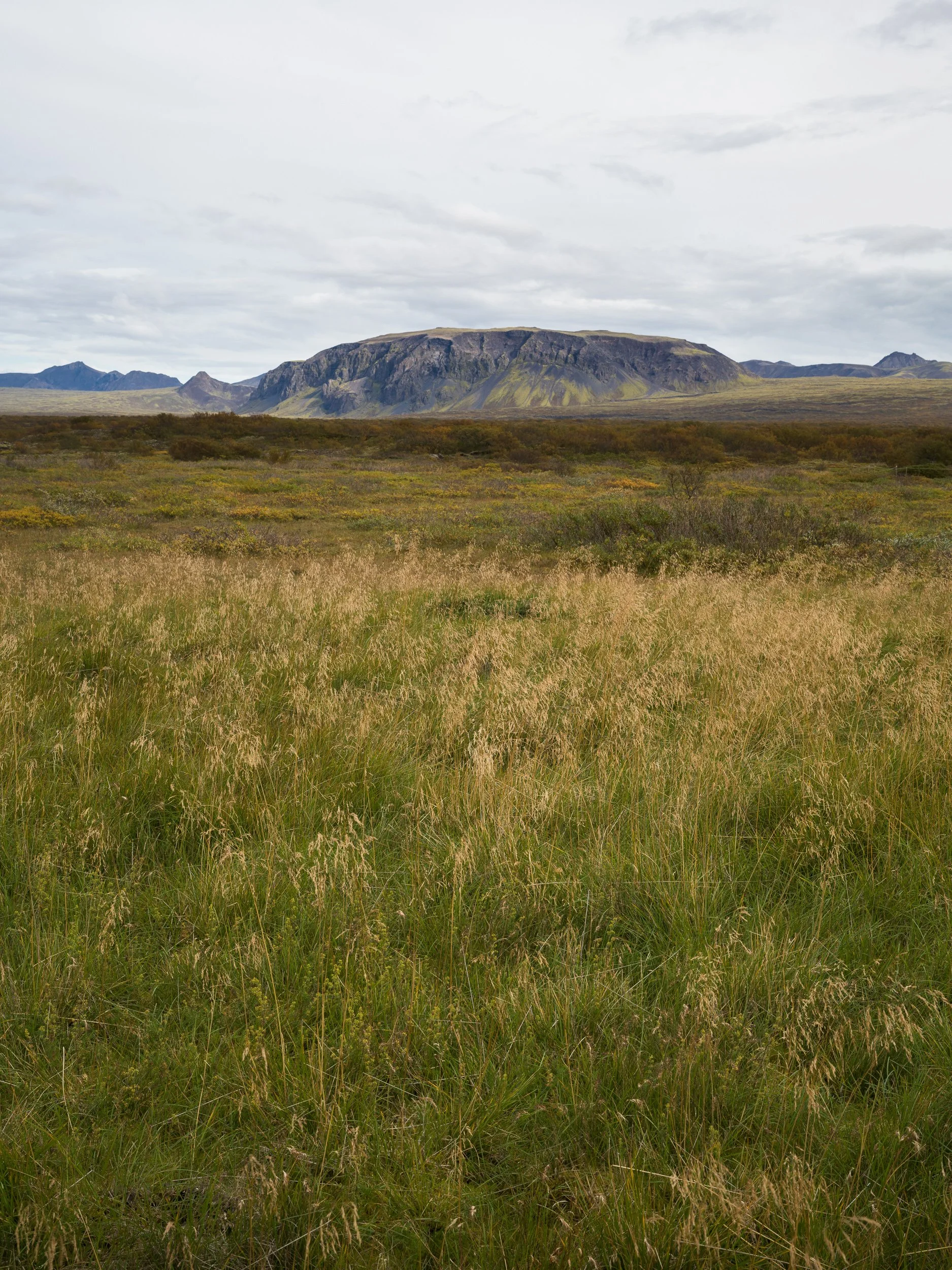 Our plan was to spend the morning photographing at Þingvellir and then continue our journey. We headed to another part of the park, north of the campgrounds, where we knew there were several trails and where there should be a lot fewer people. Unfortunately, after tries at several of the trail heads where we came across signs saying that the trails had been closed due to the recent heavy rains, I settled on a photograph of an opening in the lava field taken from the side of the road. We were quite disappointed of being deprived of an opportunity to explore an area one of the hosts of the campground said they liked to visit.