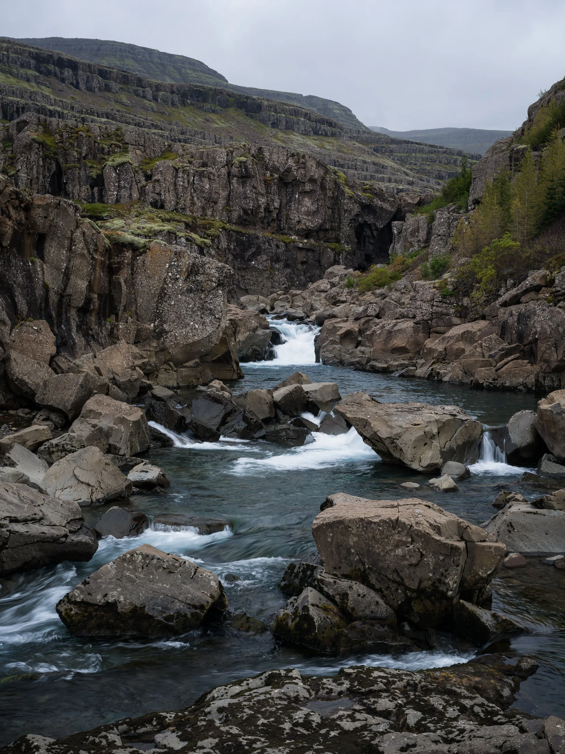From there, we drove over to the Þórsmörk area where we decided to do the slow drive-by viewing of two more waterfalls - Seljakandsfoss and Gljúfrabui - for the obvious reasons (packed parking lots and crowds), opting instead to drive into the Þórsmörk valley. There we stopped to hike towards the Nauthúsfoss Canyon and decided we didn’t feel like doing the climb to see the falls and instead spent some time at the mouth of the tight canyon.