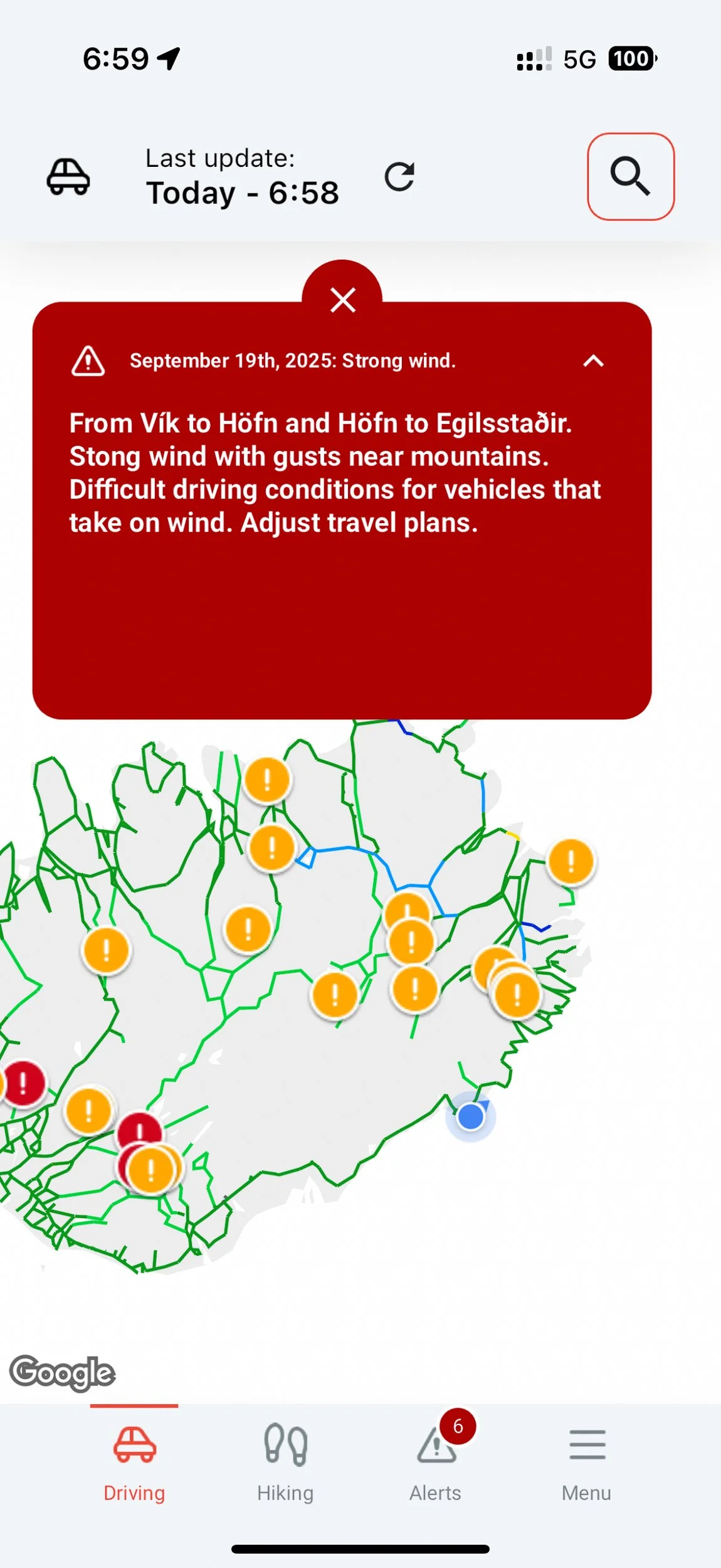 And as it turned out, it was a good decision. As I mentioned, the forecast for the southern Eastfjörds had been for heavy rains. Well, that’s what they got. The next day we saw that there had been multiple mud slides that affected the Ring Road and a bridge between Höfn and Djúpivogur had been washed out - two days after we’d driven on it. We’d dodged a bullet.
