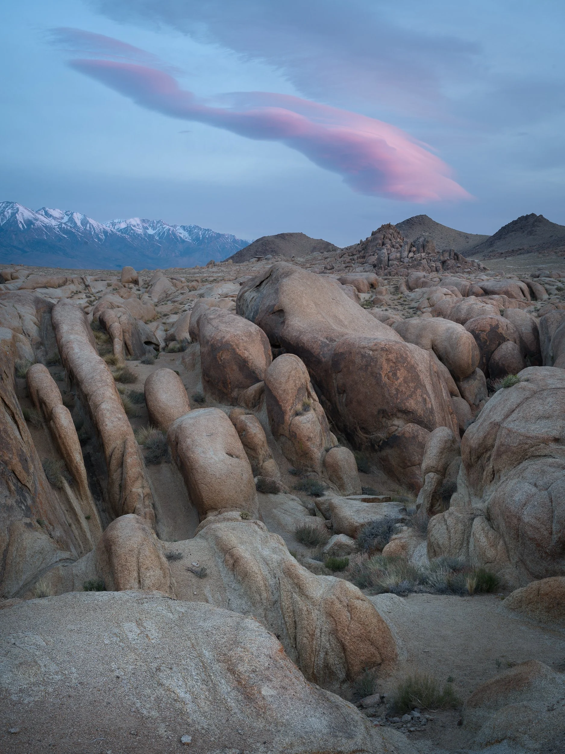 As I mentioned in the blog post about our trip, we tried to make our run from Springfield to Phoenix as much a photography trip as possible. That meant early mornings for photographing. Fortunately, our morning at the Alabama Hills was a pleasant one, complicated only by some low-hanging clouds in the east that made for some tricky image-making in the transition between dawn and sunrise. Still, it was well worth the effort of getting up early and fumbling around in the dark hoping you’ve got your camera pointed at something interesting. Fortunately, we were both successful. But while Ann wasn’t feeling quite ready to print anything, I had three images, taken in fairly quick succession, that I wanted to see on paper, so here they are.