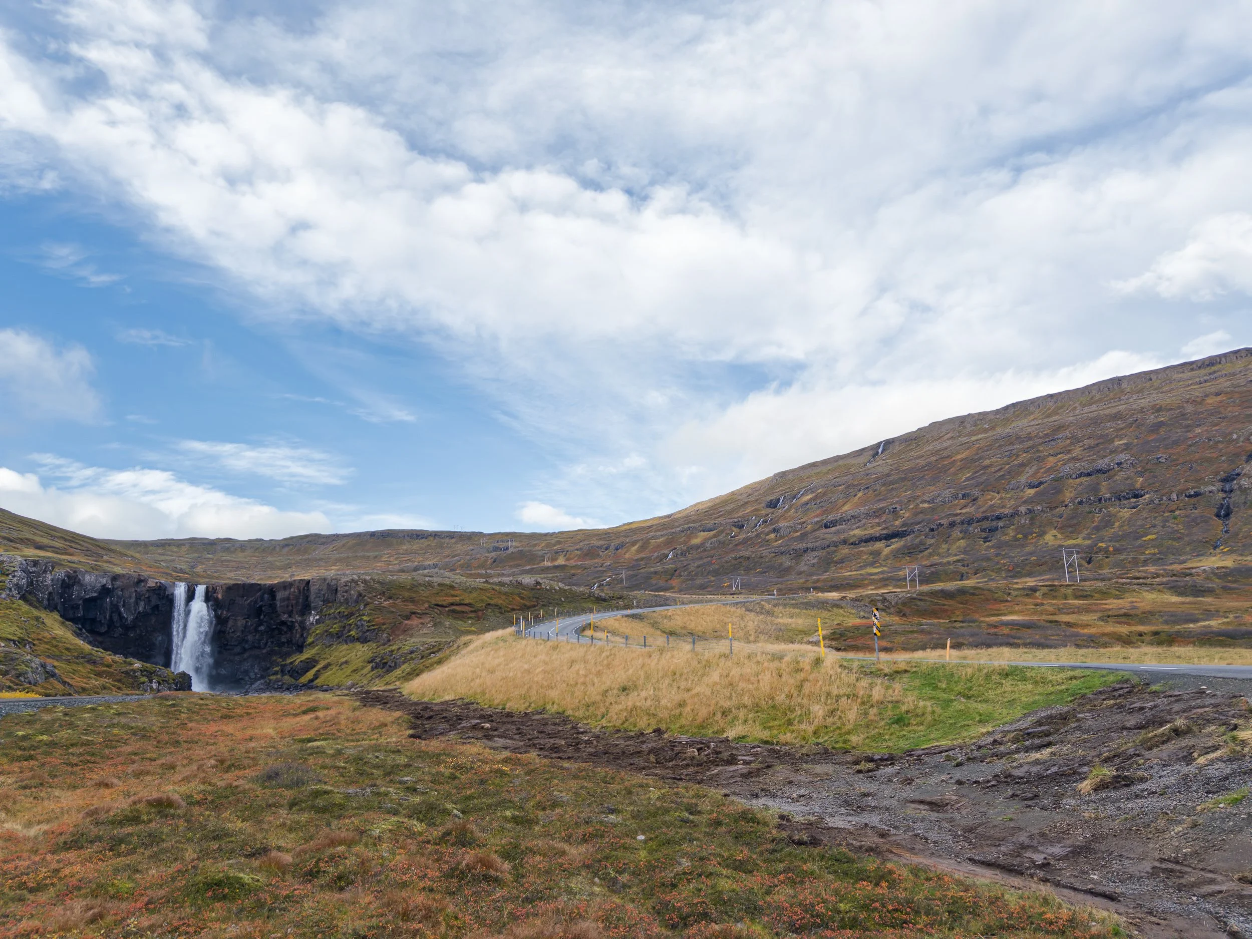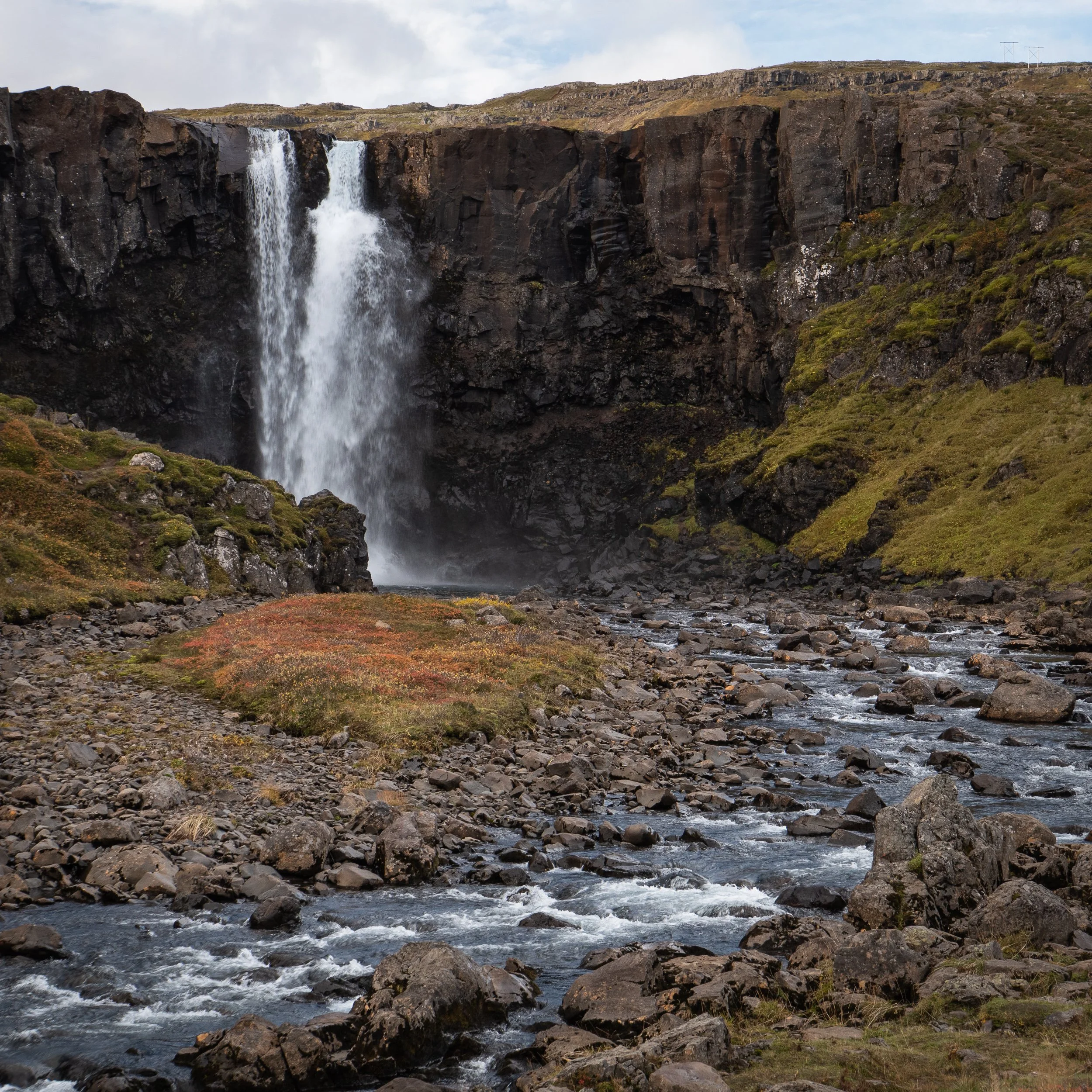 Our goal was to reach the Stu∂lag Canyon campground by the end of the day, but we had a couple of potential stops to make along the way. The popular Rjúkandi Waterfall, right on the Ring Road, was just like it was our previous drive-by - packed! So we backtracked a ways to wander around Torfhúsin Hjar∂arhaga, an old farm that still had some of its turf house barns and a turf work shop.