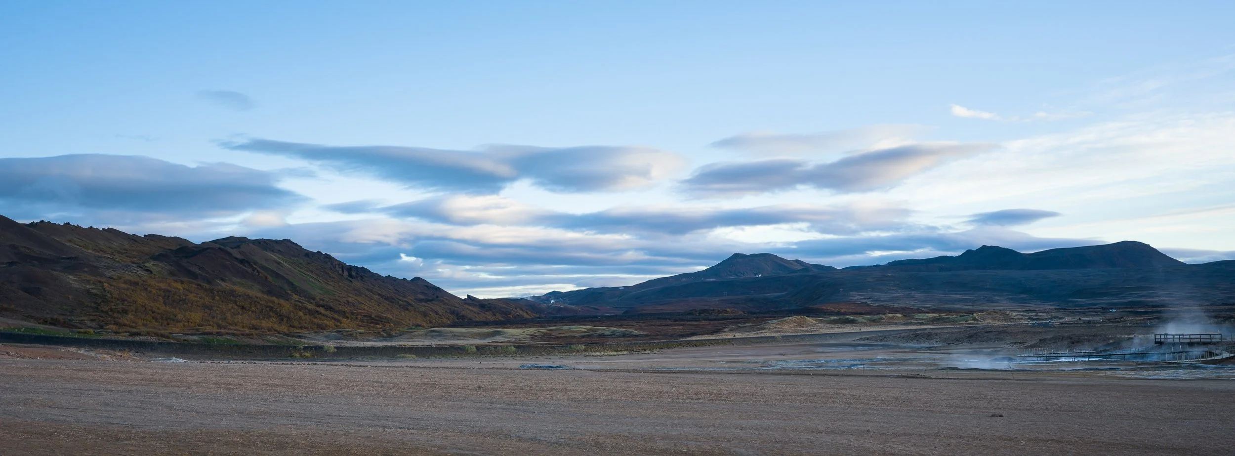 When we woke up to . . . pretty much silence, we figured we should head out to the Hverir geothermal area as planned. It was darned cold, and a steady but not terribly gusty wind blew, but the early morning light was lovely.