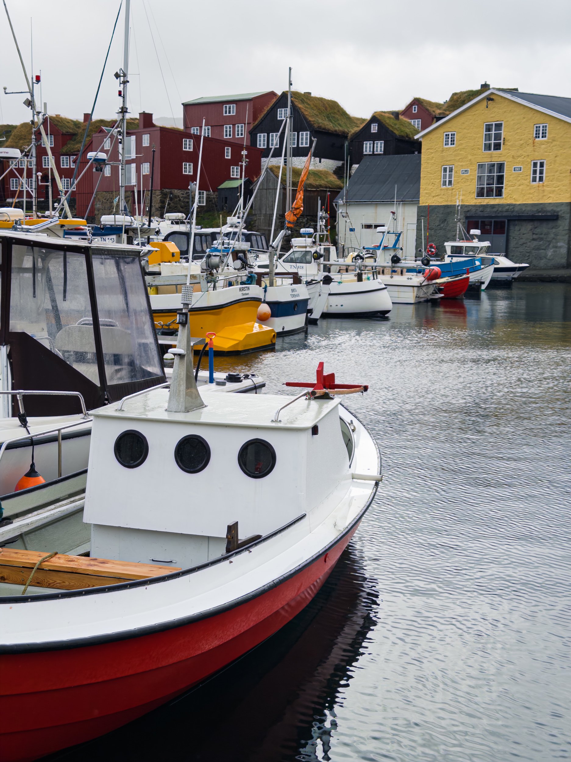 Fortunately, as we approached the Faroe Islands and the channels between the islands, the seas died down, and entering Tórshavn was not a problem. We pulled into the harbor, did a 180, and then backed into our slip.