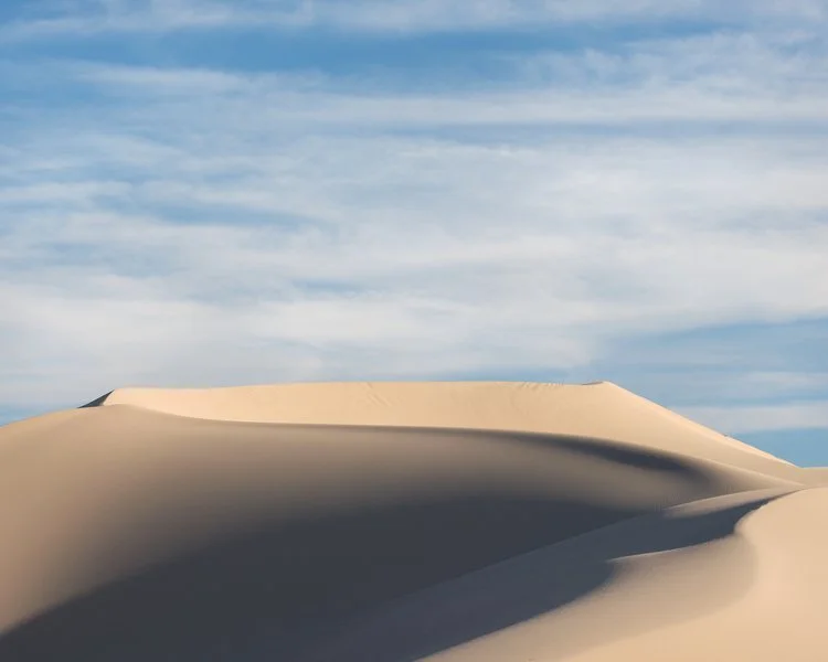 I wound up with three images I worked on, each for a slightly different reason. The first two images came from a series of images I made in the Ibex dunes where I was concentrating on a distant dune ridge line and the shadows created by that line as it swept towards the camera. Strangely enough, I can recall that the thing that caught my eye at the time was the distant feature, the line between sand and sky, not the fascinating lines and shadows that were closest to me - those were just the icing on the cake.