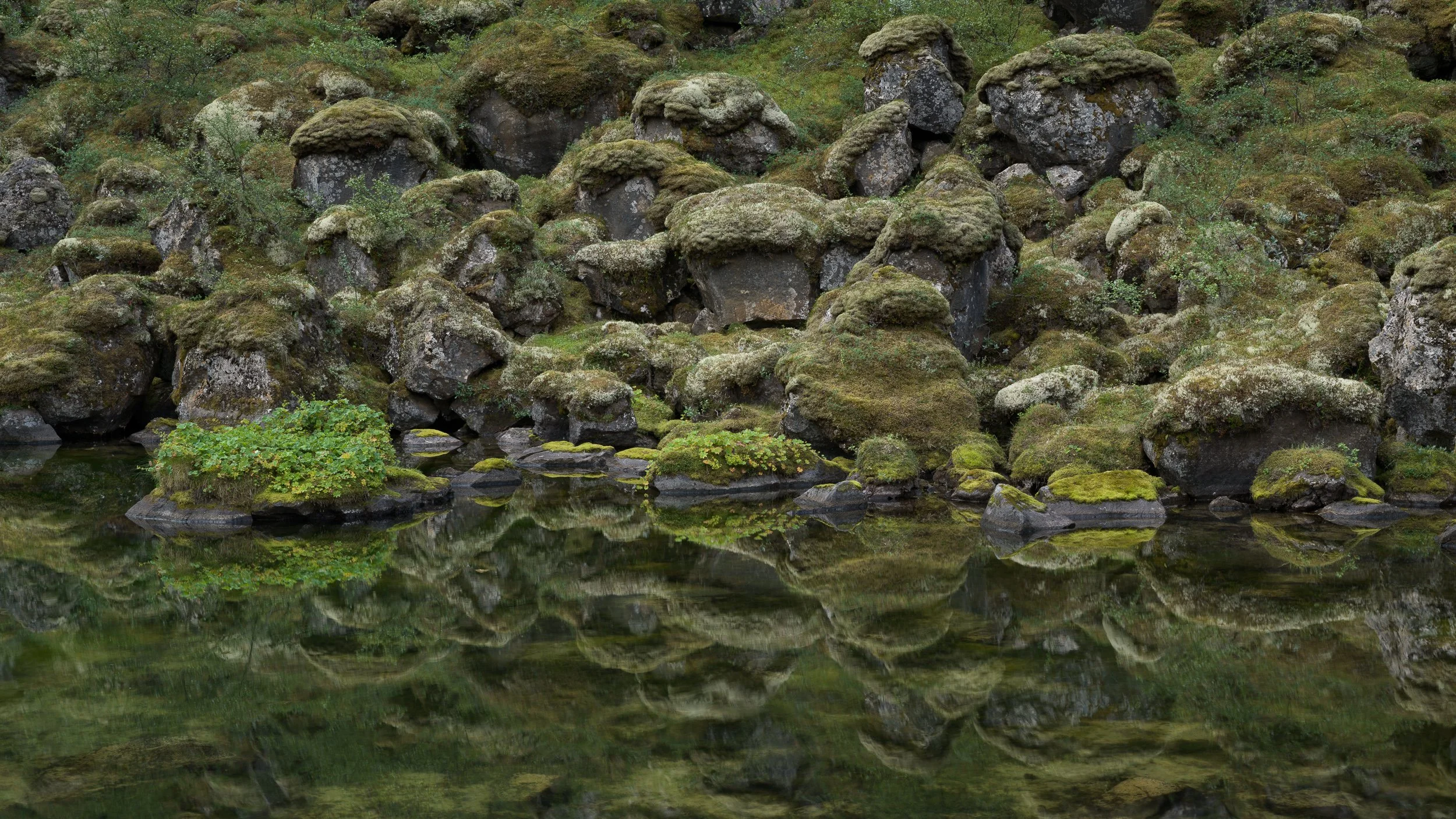 The second image was made by rotating the filter by 90 degrees. That orientation was confirmed visibly by maximizing the brightness of the water - rotating the filter too far so it darkens again, and then rotating it back to least effectiveness (i.e. brightest reflections). In the image below, you can see there’s more reflection of the rocks in the water, but also notice that the mosses on the rock look a bit duller. Polarizing filters often help in color saturation of subjects, in this case by removing glare from the sky from vegetation that may reflect it. Turn the polarizing effect off and . . . the vegetation dulls a bit. For me, this image is a reject for that reason - it’s lost a bit of life to it.